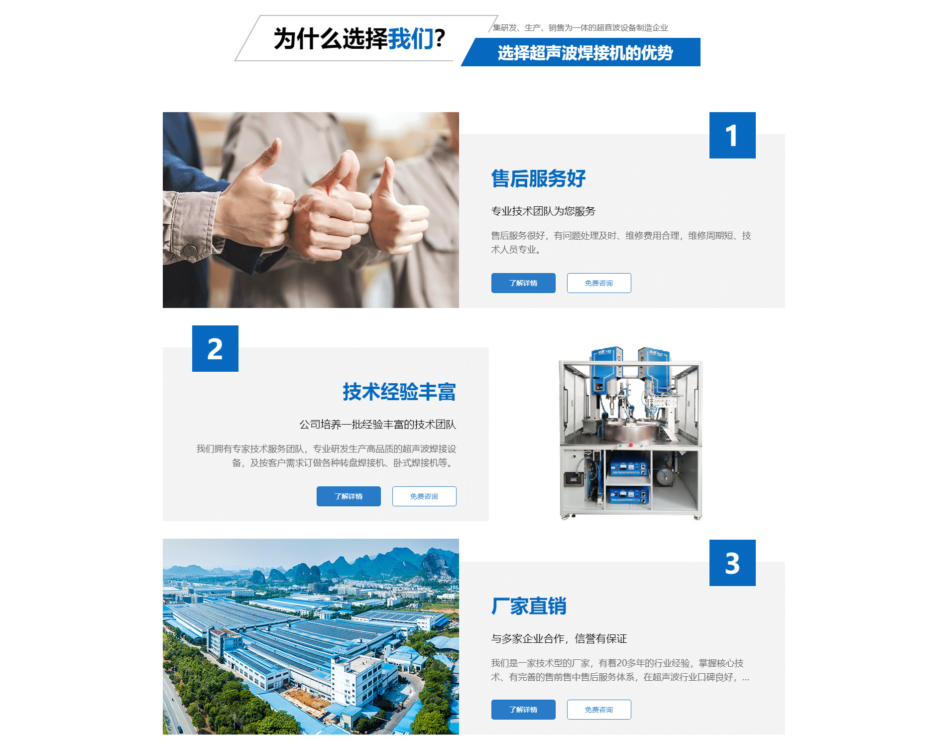廈門(mén)勁榮機(jī)械設(shè)備有限公司是一家集研發(fā)、生產(chǎn)、銷(xiāo)售為一體的超音波設(shè)備制造企業(yè),主要產(chǎn)品包括多規(guī)格型號(hào)的超音波塑膠熔接機(jī)、熱板式塑料焊接機(jī)、多工位轉(zhuǎn)盤(pán)焊接機(jī)、振動(dòng)摩擦焊接機(jī)、旋轉(zhuǎn)式塑膠熔接機(jī)及配套的工裝夾具等。公司自2003年成立以來(lái),一直致力于產(chǎn)品不斷完善中,并追求產(chǎn)品的精益求精,于2004年向國(guó)家商標(biāo)局注冊(cè)了“勁榮”牌商標(biāo),2009年榮獲廈門(mén)市商標(biāo)。 經(jīng)過(guò)多年的努力,公司已經(jīng)發(fā)展成為占地面積2000余平方米、擁有員工50余人的企業(yè)。公司一直將“品質(zhì)是企業(yè)發(fā)展的原動(dòng)力”作為經(jīng)營(yíng)理念,嚴(yán)把質(zhì)量關(guān),建立了一整套有效的安全生產(chǎn)及管理模式,不僅贏(yíng)得了同行的認(rèn)可,更取得了客戶(hù)的信賴(lài),先后與九牧集團(tuán)、路達(dá)工業(yè)、建霖集團(tuán)、西伯電子、蒙發(fā)利實(shí)業(yè)、松霖科技、銥科集團(tuán)、科司特電子等公司建立了長(zhǎng)期的合作關(guān)系。 面對(duì)已經(jīng)取得的成績(jī),我們不驕不滿(mǎn),因?yàn)樯钪獦I(yè)績(jī)只能代表過(guò)去,只有靠良好的產(chǎn)品質(zhì)量和完善的售后服務(wù)才能在客戶(hù)中口碑相傳,在...